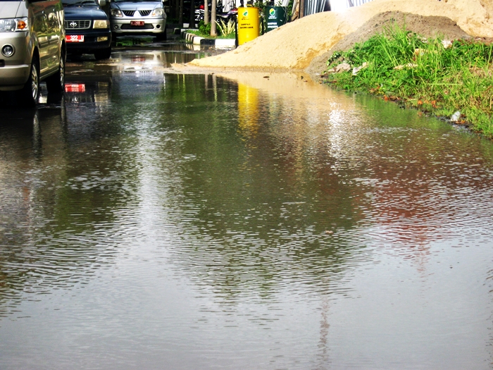 Meskipun hanya semata kaki orang dewasa, genangan air ini membuat sebagian karyawan pemkot dan masyarakat yang sedang mengurus adminstrasi di dinas kependudukan dan catatan sipil atau pun yang lain, terpaksan ambil jalan memutar. Celana terpaksa dilipat untuk menghindari basah.