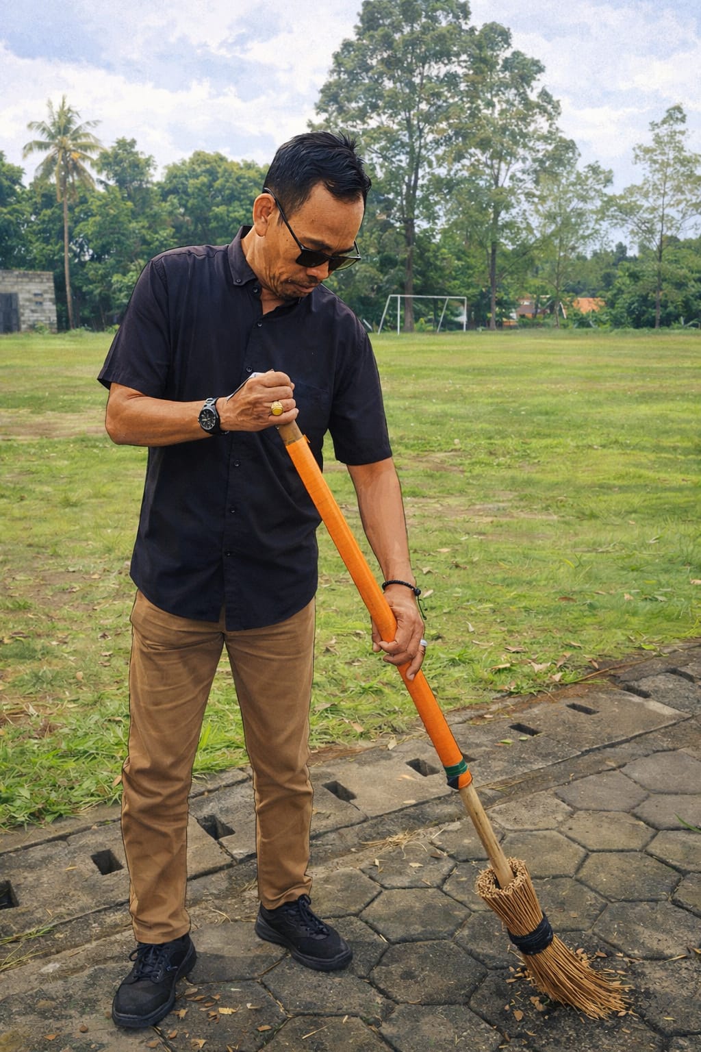 BIDIK BANTEN I CILEGON – Pagi itu, suasana taman Kecamatan Purwakarta tampak seperti biasa. Sejumlah warga memanfaatkan ruang terbuka tersebut untuk olahraga dan aktivitas ringan. Di antara mereka, terlihat seorang pria dengan sapu di tangan, membersihkan area taman tanpa banyak bicara. Dialah Saefu Rohman, yang akrab disapa Kang Oman.