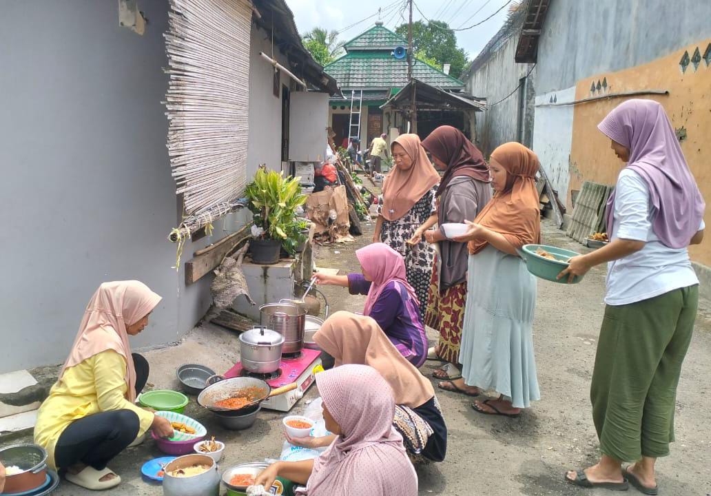 Tak kalah penting, peran kaum ibu juga terasa. Mereka menyiapkan hidangan sarapan dan makan siang bagi para peserta gotong royong. Suasana hangat penuh canda tawa memperlihatkan eratnya ikatan sosial antarwarga.