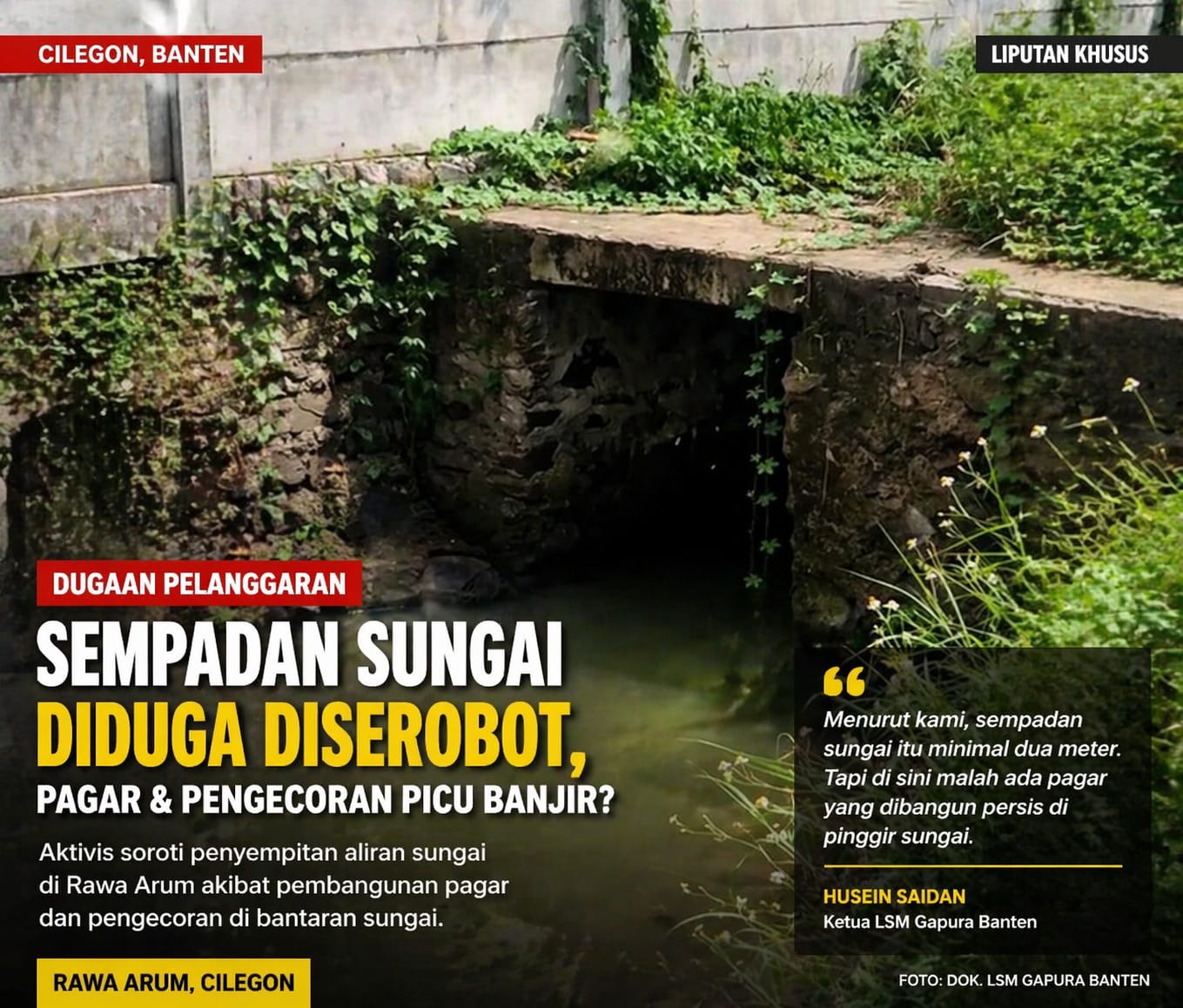 Sementara itu, hingga berita ini diterbitkan, pihak terkait seperti Dinas PUPR Kota Cilegon belum memberikan keterangan resmi terkait kondisi sempadan sungai yang disorot dalam tayangan tersebut.